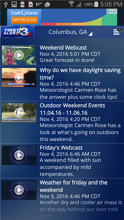 - Access to the latest video forecasts from the First Alert Weather Team