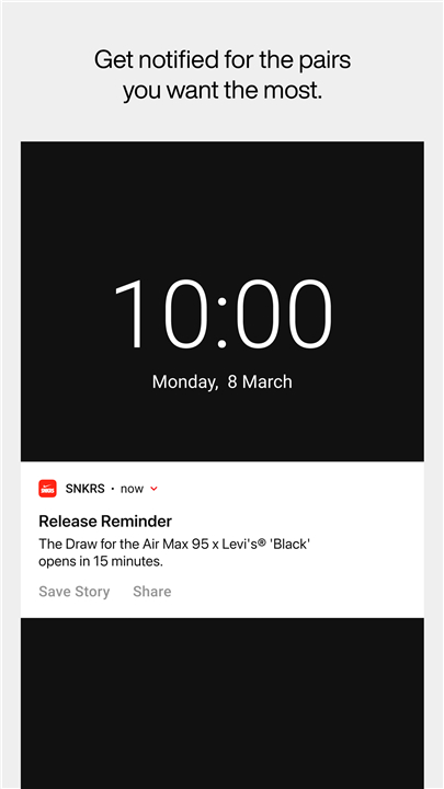 • SNKRS Live: Tune into live broadcasts for insider news, behind-the-scenes stories, and real-time polls with the sneaker community.