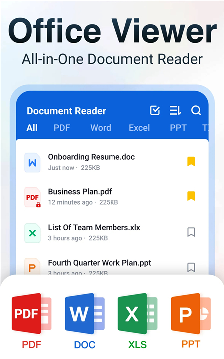 • Unlock the convenience of a PDF reader, Word viewer, Excel and PPT reader—all in one app.