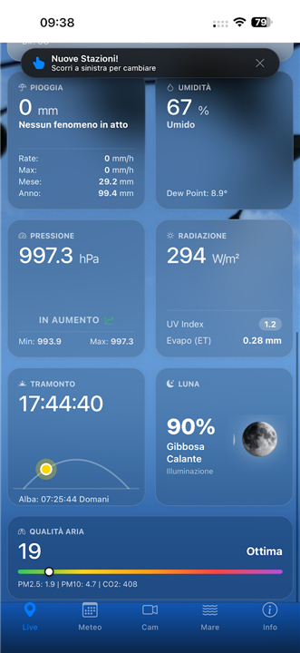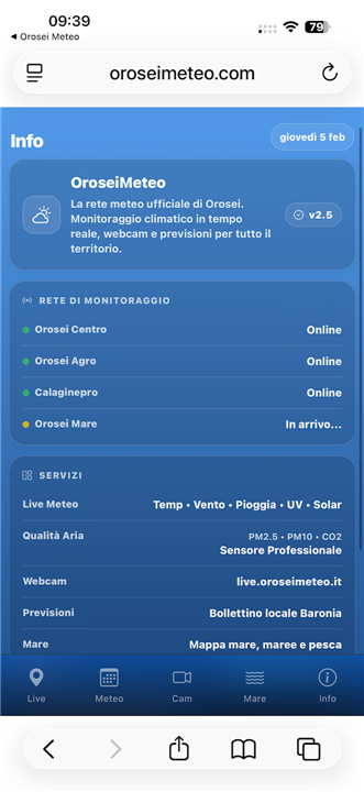 A: The app allows you to explore several diverse microclimates by offering data from multiple stations, including Orosei Center, Orosei Agro, and Cala Ginepro. We are also excited to announce that a new station at Orosei Mare - Subarone will be added to the platform very soon to provide even more coastal detail.