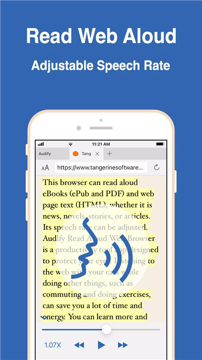 Audify read aloud web browser