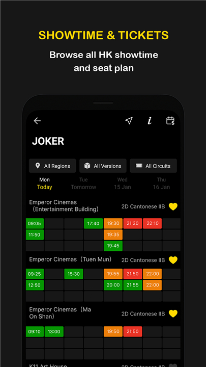 • View showtimes for a wide selection of cinemas across Hong Kong.