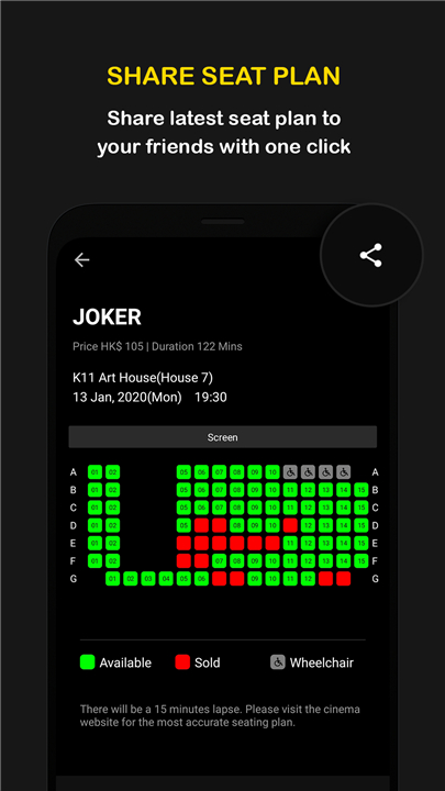 • Check real-time seat availability for participating cinemas.