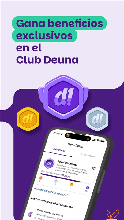 • Join the Deuna Club to access a tiered system of benefits and rewards based on your regular app usage.