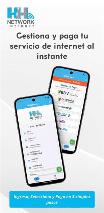 • With the official HHNETWORK application, you can pay all your service invoices in just a few taps.