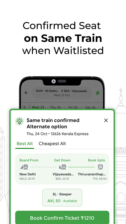 • Same Train Alternates – find confirmed tickets by adjusting boarding/dropping points