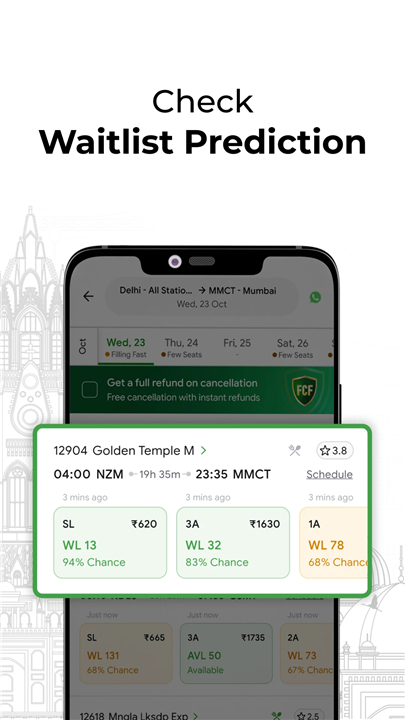 1. Prediction Engine – If the forecast shows “high chance,” your waitlisted ticket is very likely to get confirmed.