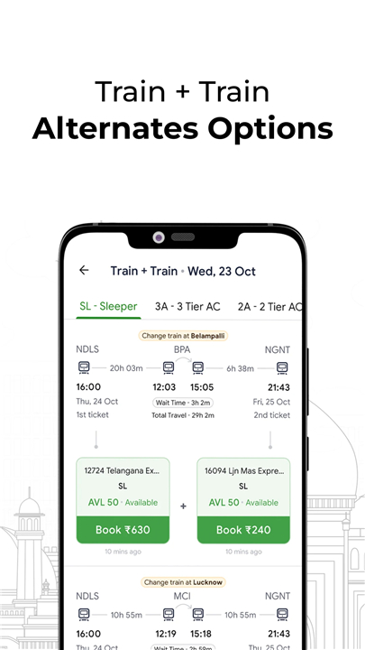 3. Smart Route Suggestions – Combine train + train, or even bus + train, to reach your destination without canceling plans.