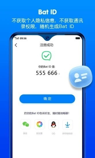 5、而下方的按钮则是通过其他社交方式(短信、QQ、微信或附近的瞬间)来发送你的Bat ID与二维码。