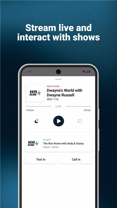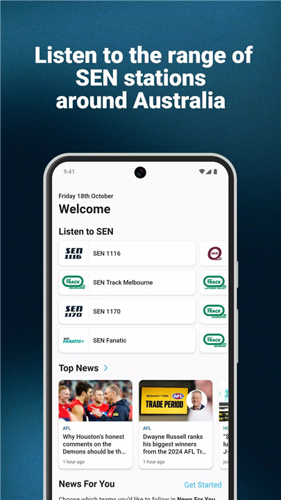 SEN Radio is Australia’s premier sports media network, delivering unmatched live coverage, expert analysis, and in-depth content across a wide range of sports and racing. From football to cricket, from basketball to horse racing, SEN offers listeners a powerful lineup of live broadcasts, engaging podcasts, real-time news updates, and exclusive video content—all through one dynamic platform. With access to stations like SEN 1116, SEN 1170, SENQ, SEN SA, SEN WA, and more, sports fans are always connected to the action, wherever they are.