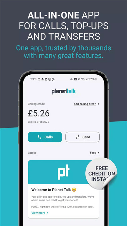 PlanetTalk is an all-in-one app that brings together mobile top-ups, bill payments, and international calling, making it easier than ever to stay connected to family and friends around the globe. With PlanetTalk, you can send airtime, pay bills, and make international calls at competitive rates, all from one easy-to-use platform. What’s more, when you install the app, you’ll receive FREE calling credit to help you get started with your first call. Say goodbye to expensive, unreliable services and switch to PlanetTalk for a reliable and affordable way to stay connected.