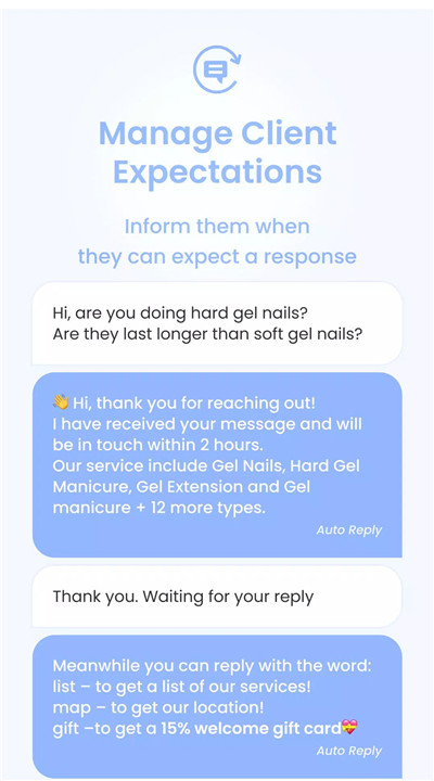The app allows you to personalize your automated text messages. You can create responses that reflect your availability, such as "I’m currently out of the office and will respond to your message once I return." This helps manage client expectations and ensures that everyone is informed when to expect a reply.