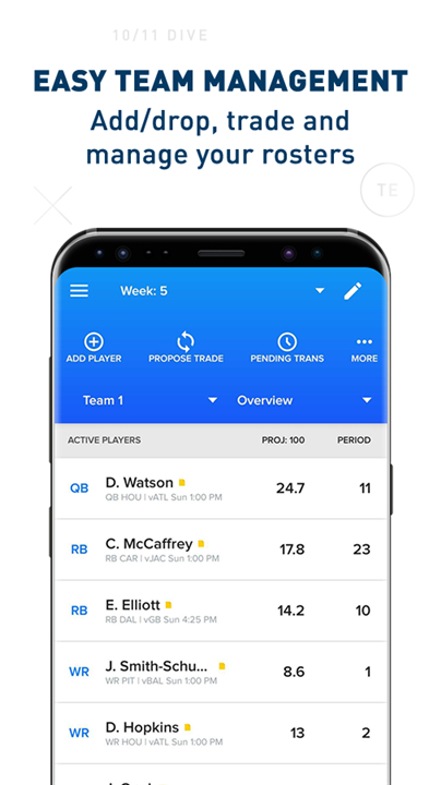 - Easily set lineups, add/drop players, and propose/monitor/accept trades in real-time.