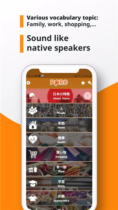 Start from basic vocabulary and topics and learn new words every day! Review learned words and topics with flashcards, quizzes, listening tests, and challenge yourself with PORO's engaging games.