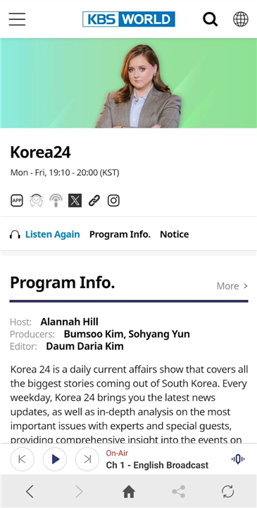 • Whether you are a fan of K-dramas, K-pop, or want to stay informed about current affairs in Korea, KBS WORLD provides high-quality multimedia services tailored to global viewers and listeners.