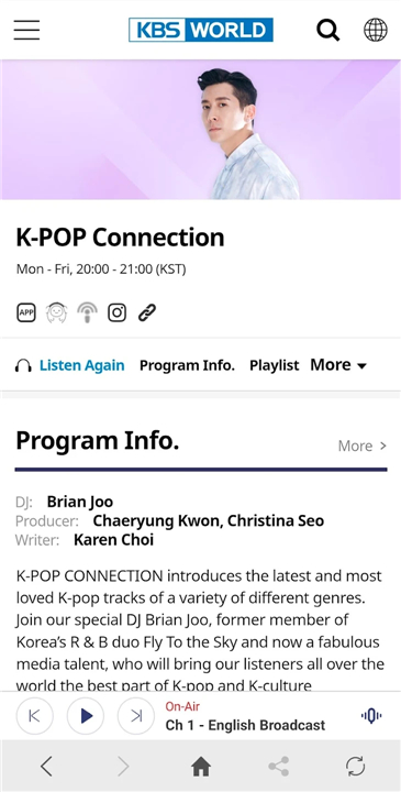 • Full and updated program schedules for all KBS WORLD channels.