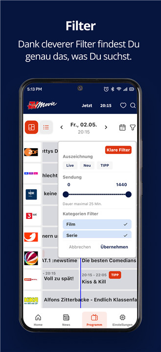 Fast, simple, clear - the best TV program with the TV Movie app! Download the latest version of TV Movie - TV Programm to enjoy new features and updates immediately!