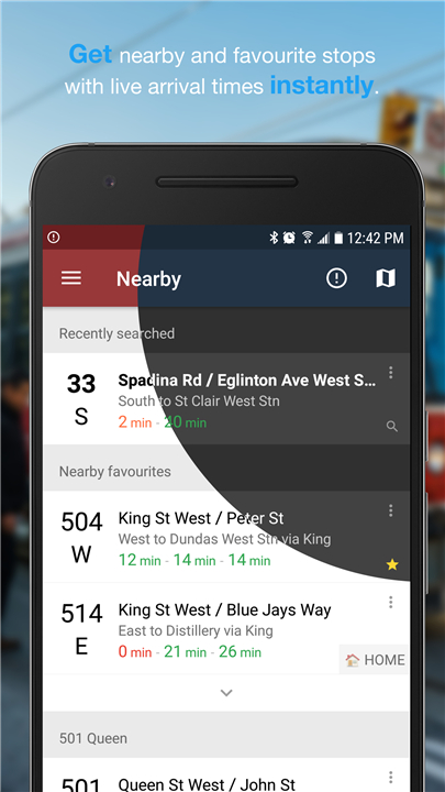 - Instantly check real-time bus departures without the hassle of swiping, scrolling, or tapping through multiple screens—get back to what matters!