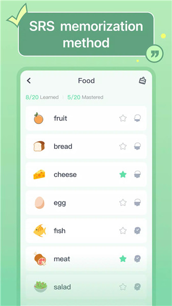 To ensure you never forget vocabulary, HelloWords employs the spaced repetition system (SRS) based on the Ebbinghaus forgetting curve.