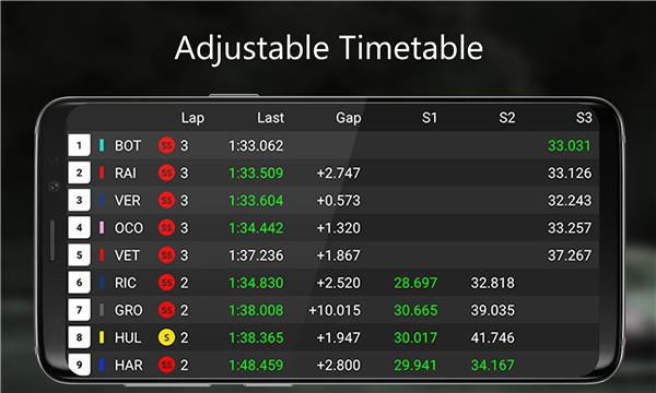 + Monitor everything from speed and RPM to live lap times, gear position, fuel consumption, tire temperature, and turbo pressure.