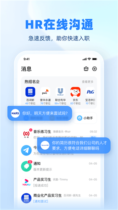 各大企业的空中宣讲会、HR实时在线互动,给你提供沉浸式体验,让你更全面了解企业文化和校招信息,直接与HR面对面沟通,轻松获取内推机会。