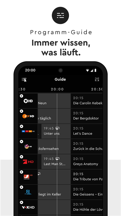• Includes content from private broadcasters like ProSieben and SAT.1, as well as public broadcasters such as ARD and ZDF.
