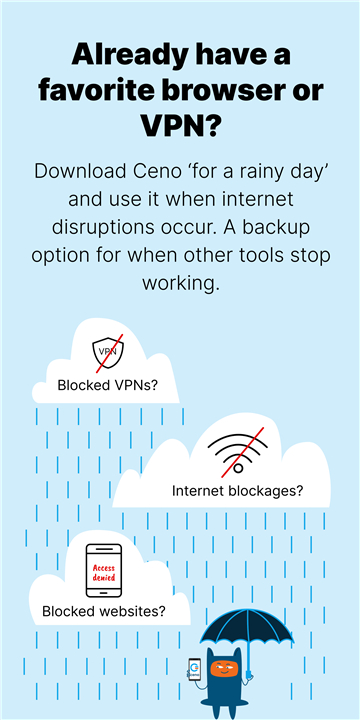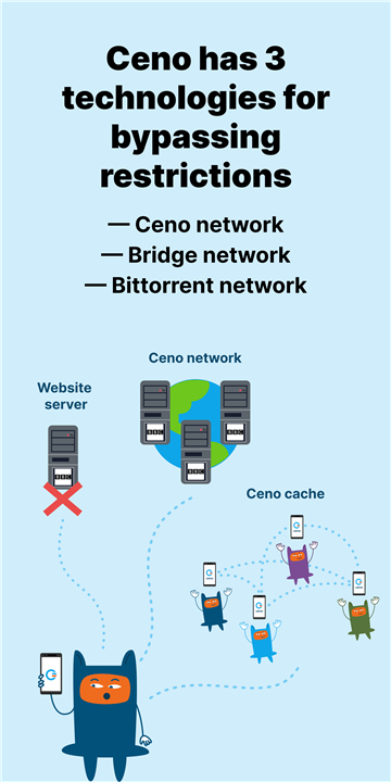• Constantly Improving: Ceno evolves to counter censorship methods. If some websites are slow or inaccessible, try again later or reach out to support—your access is our priority.