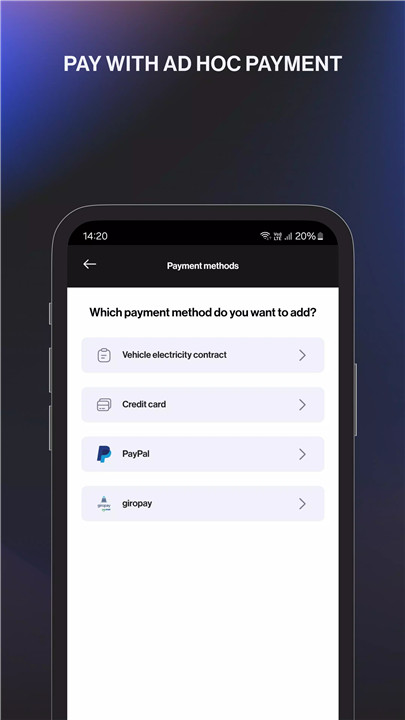 Add your payment details just once, and you’re set for future charging sessions. The eCharge+ App supports multiple payment methods, including PayPal, credit cards, your electricity contract, or even vouchers, making payments quick and hassle-free.
