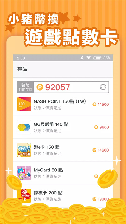你可以兑换赖贴图、游戏点数卡、超市现金券、优惠券等各种虚拟商品和礼品。
