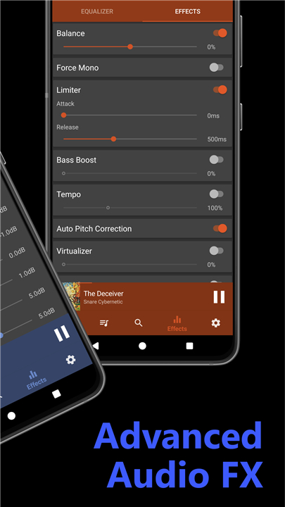 • Enhance bass, tweak playback speed (with pitch correction), and apply DSP limiter.