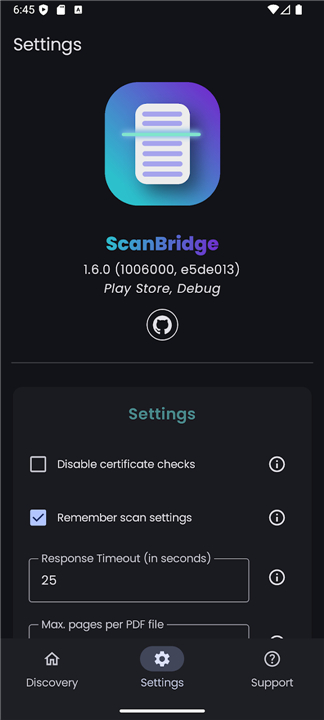 ScanBridge also celebrates its first release to Google Play! The app is available there for a small price to support the development. You also receive prioritized support with the purchase. Of course, the app still can be obtained for free on F-Droid or from GitHub.