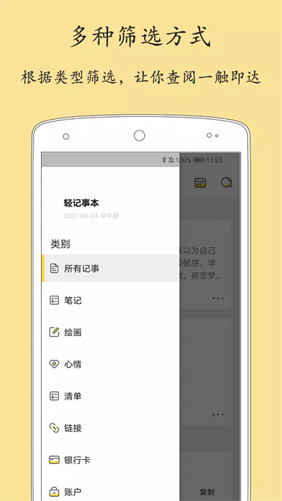你可以记录文字、插入图片、绘制图形、保存网站链接、创建待办事项清单、写心情日记,还能记录银行卡和账户信息。