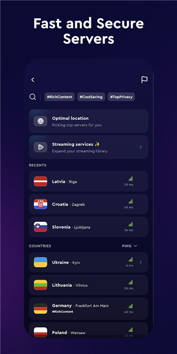 • Customize your experience with advanced server sorting based on your specific privacy needs.