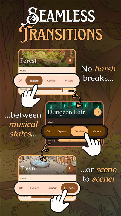 • • With just a single tap, Pocket Bard lets you shift from exploration music to combat themes instantly.