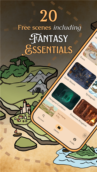 • Create custom playlists, save favorite soundscapes, and organize tracks by location, theme, or campaign.