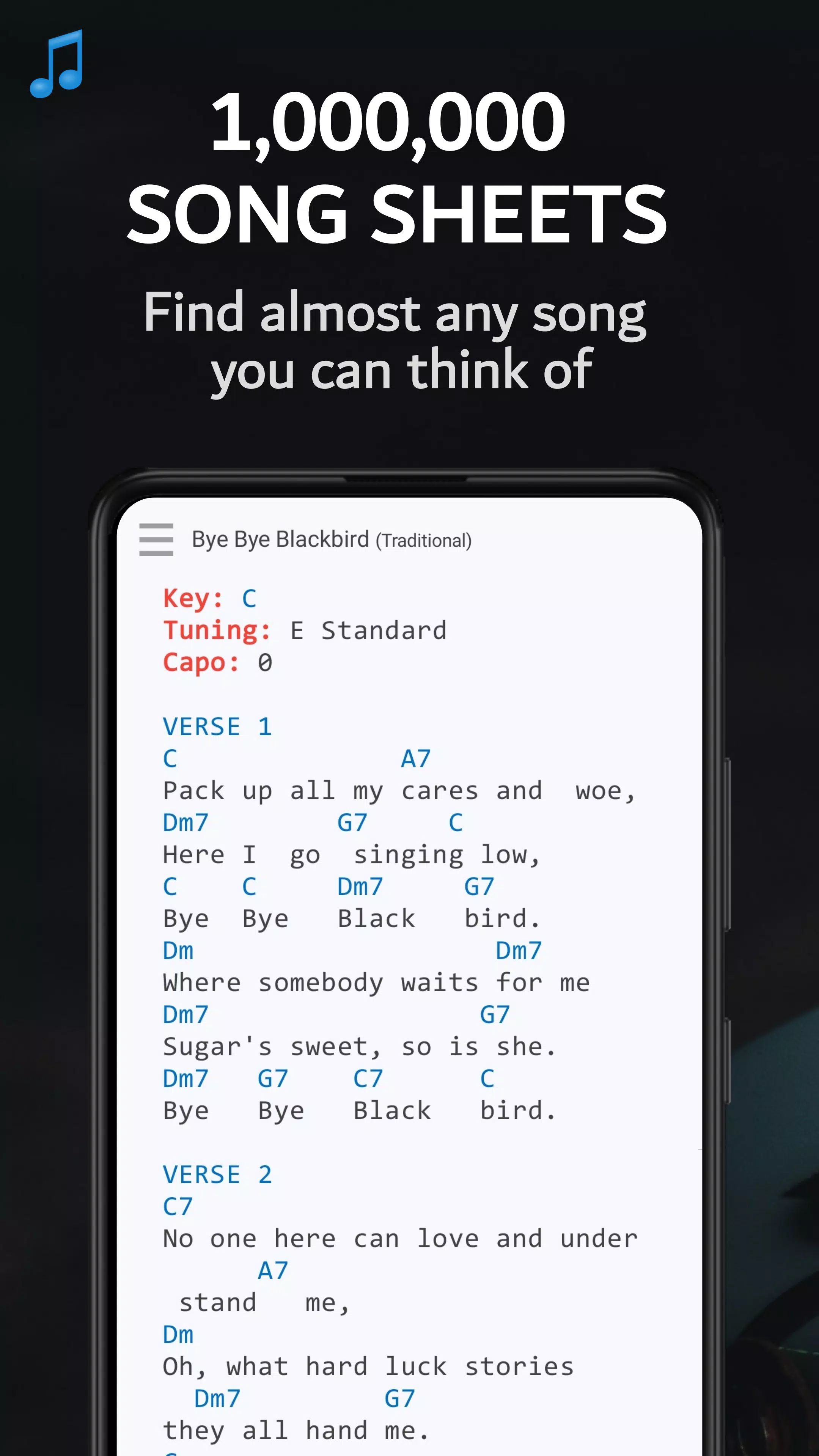 Search from more than 1,000,000 song sheets across genres and artists. Quickly find your favorite tunes by artist or song title and save them to your personal collection.