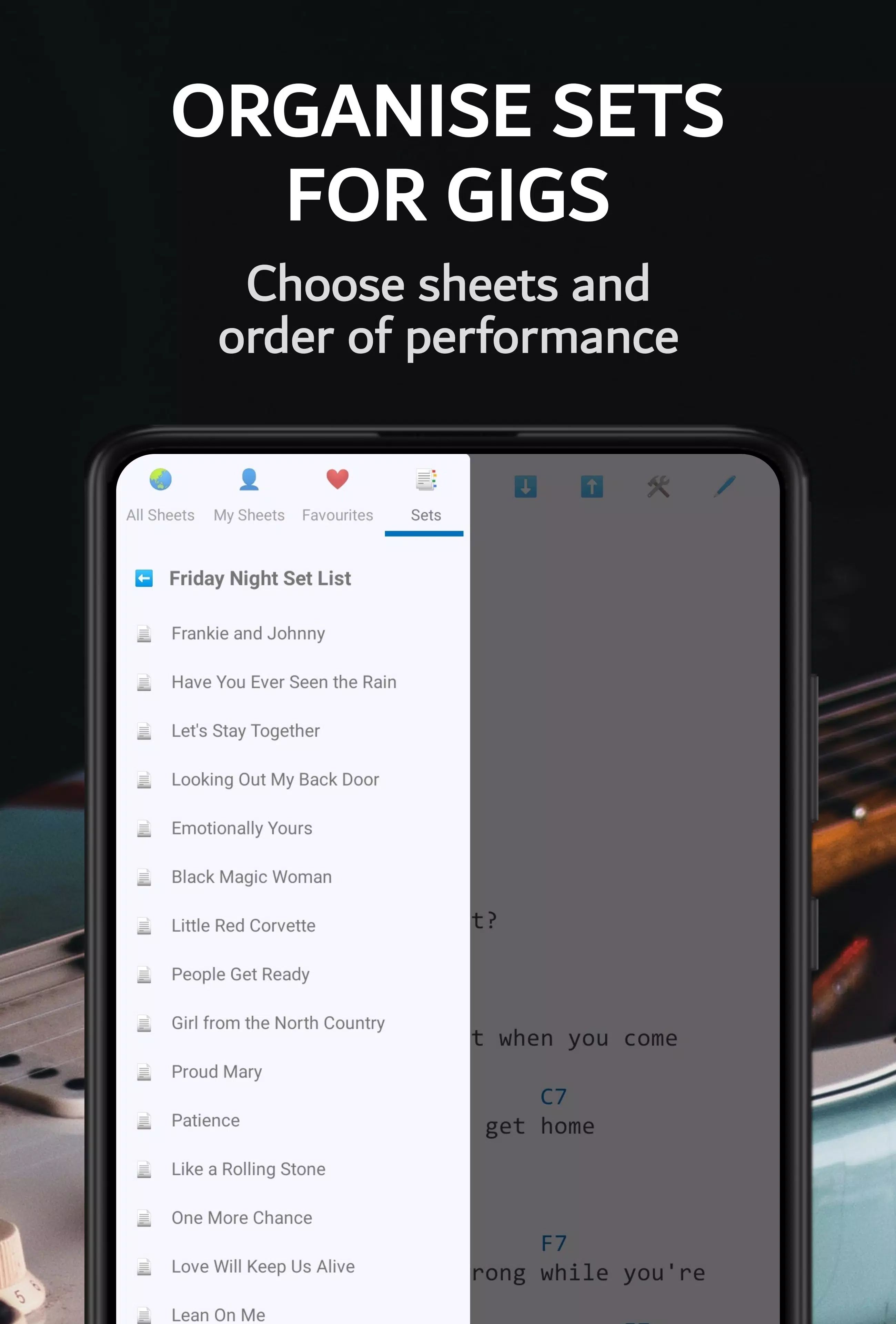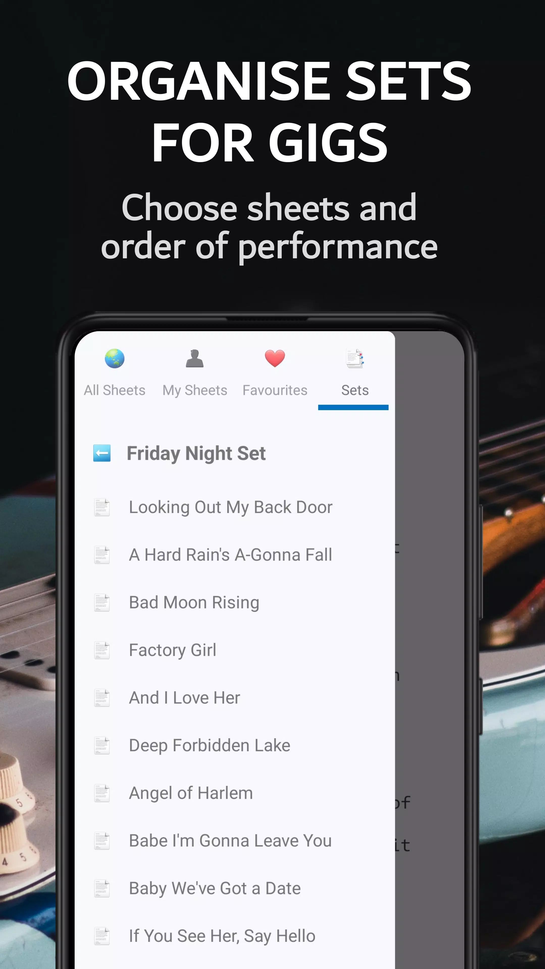 Manage your own library and create setlists for gigs or rehearsals. Share individual sheets or entire sets with friends and bandmates seamlessly.