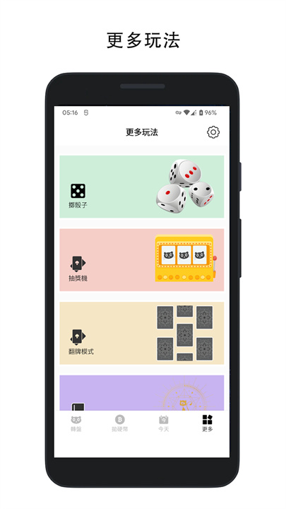 多样化决策方式:除了转盘,你还可以选择抛硬币、翻牌或掷骰子等多种玩法,丰富了决策的趣味性。