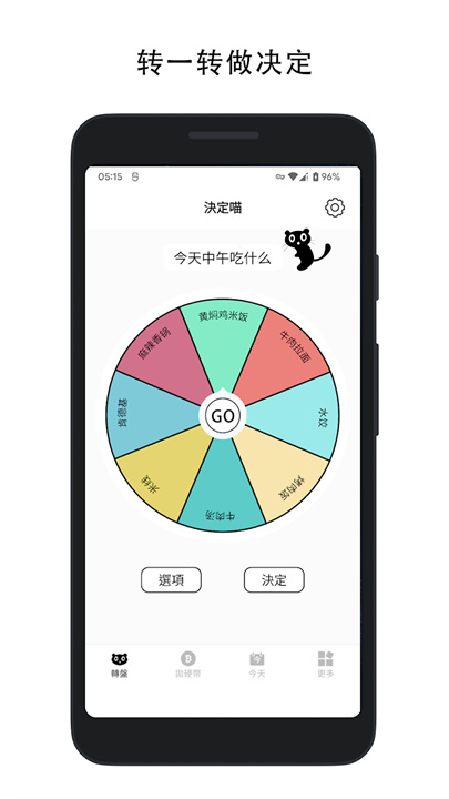 决定喵是一款趣味决策应用,专为解决选择困难症而设计。用户可以在多个轮盘中输入犹豫不决的选项,随时使用它们来做出决策。应用支持本地数据存储,确保隐私安全,提供抛硬币、翻牌和掷骰子的多种玩法。例如是决定“吃什么”还是聚餐地点,只需简单填写选项并旋转轮盘,轻松让命运来帮你选择!