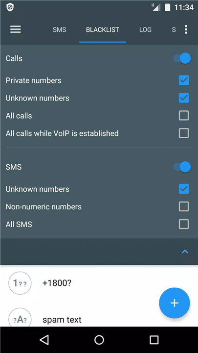 The free version of "Calls Blacklist - Call Blocker" allows you to block calls from private, unknown, or restricted numbers. You can also add numbers to the blacklist and access the call log to review blocked calls. For certain advanced features like blocking SMS and password protection, please check out the PRO version.