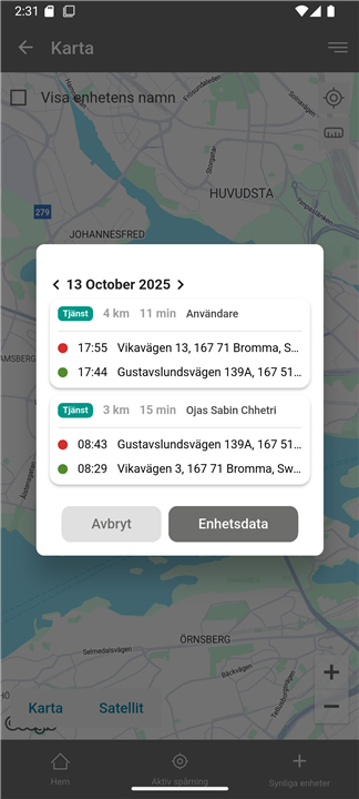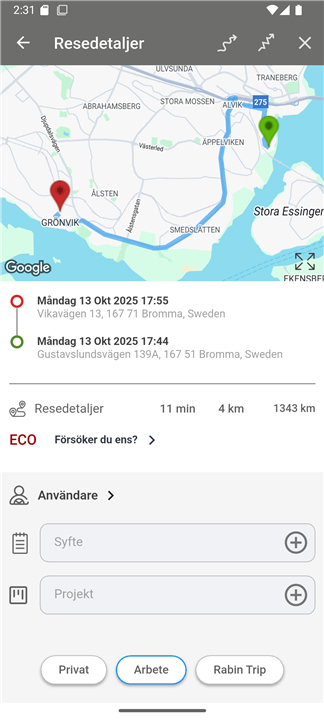 • Automatic logging of all trips with precise start and end times, distances, and routes.
