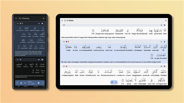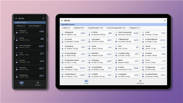 Explore the Holy Quran with eKorán. Features Hungarian translation, word-by-word analysis, and audio recitations. Download the latest version of eKorán to enjoy new features and updates immediately!