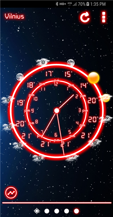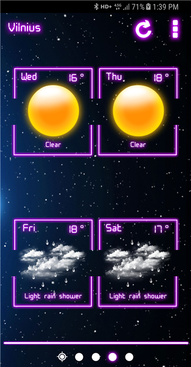 • With striking neon effects, a deep space-inspired backdrop, and gentle star animations that glide across your screen, checking the weather becomes something you actually look forward to.