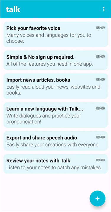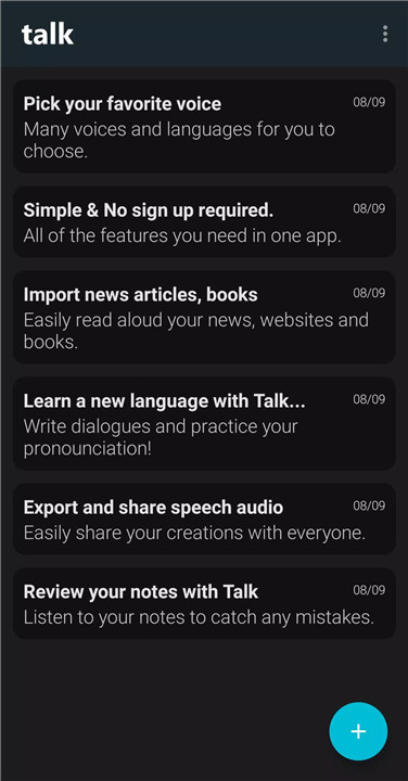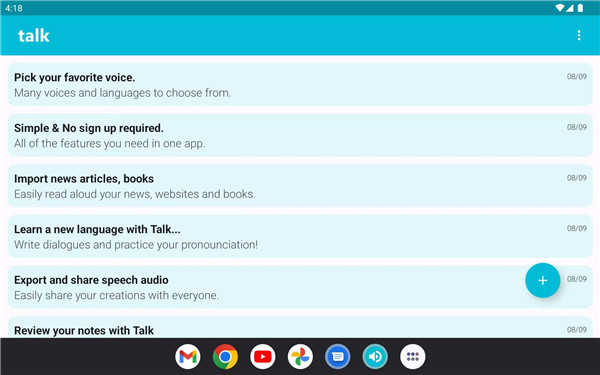 Experience the power of Talk, your all-in-one solution for text-to-voice conversion, perfect for web page reading, and audio export capabilities.