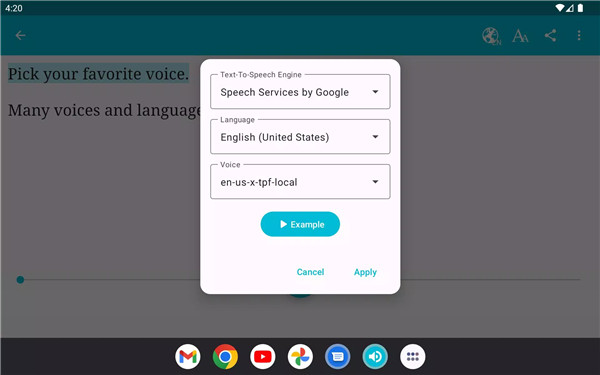 Talk: Your Personal Voice Assistant, Reading Texts Out Loud