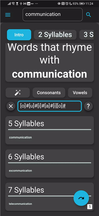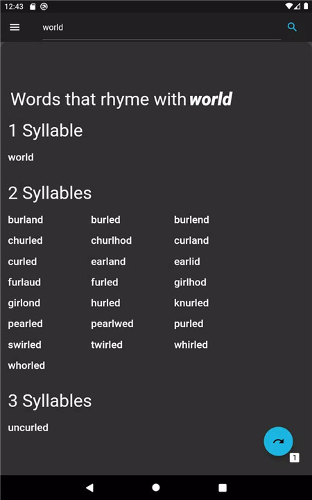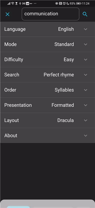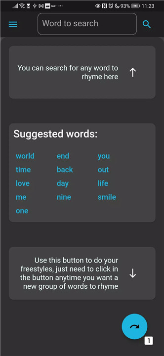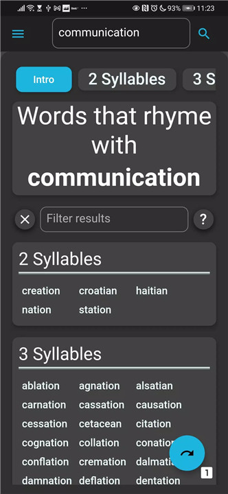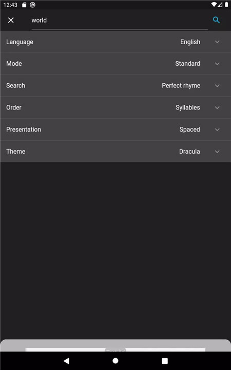 Rhymit works offline so you can find rhymes anytime, anywhere—no internet required. Just download the languages you want (only about 30MB each) to unlock faster searches and extra features like smart search suggestions. This is especially handy when filtering for near rhymes, helping you explore creative options beyond perfect matches.