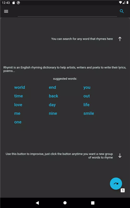 Rhymit is your go-to app for finding rhymes and enhancing your songwriting skills. Whether you’re a professional lyricist or just love creating music, Rhymit helps you craft better lyrics with ease. Designed to work offline for free, it offers fast, versatile rhyme searches and a suite of tools to manage and perform your lyrics—all in one lightweight app.