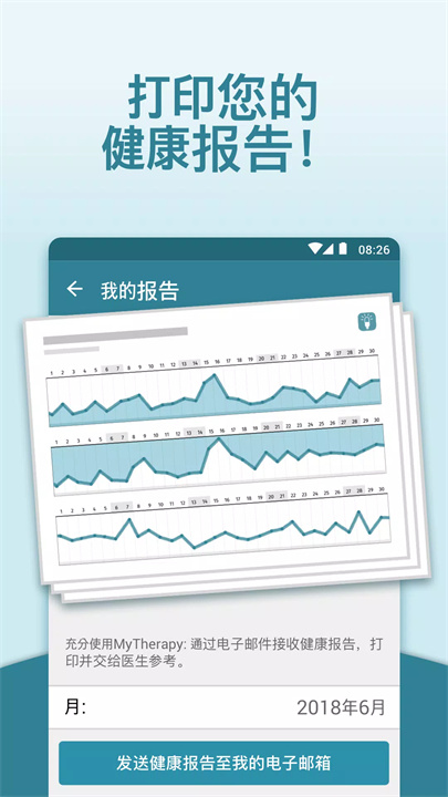 MyTherapy 自动生成健康报告,帮助用户记录治疗进度。用户可以轻松查看自己的健康数据和用药历史,并将报告直接分享给医生,以便获取更好的治疗建议。