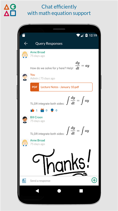 • Acadly facilitates real-time communication by enabling students to ask and answer questions both inside and outside the classroom, effectively serving as an instant messaging platform for the entire class.