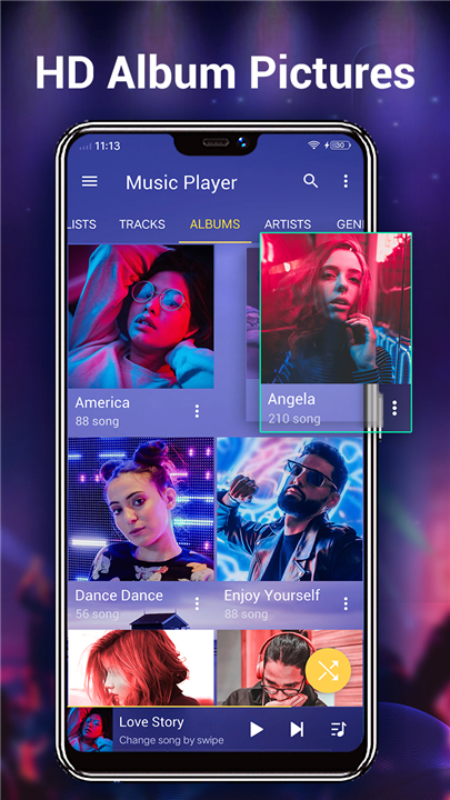 • This Music Player for Android offers a seamless and enjoyable listening experience with quick search capabilities for all music files, HD audio playback, and a powerful built-in equalizer.